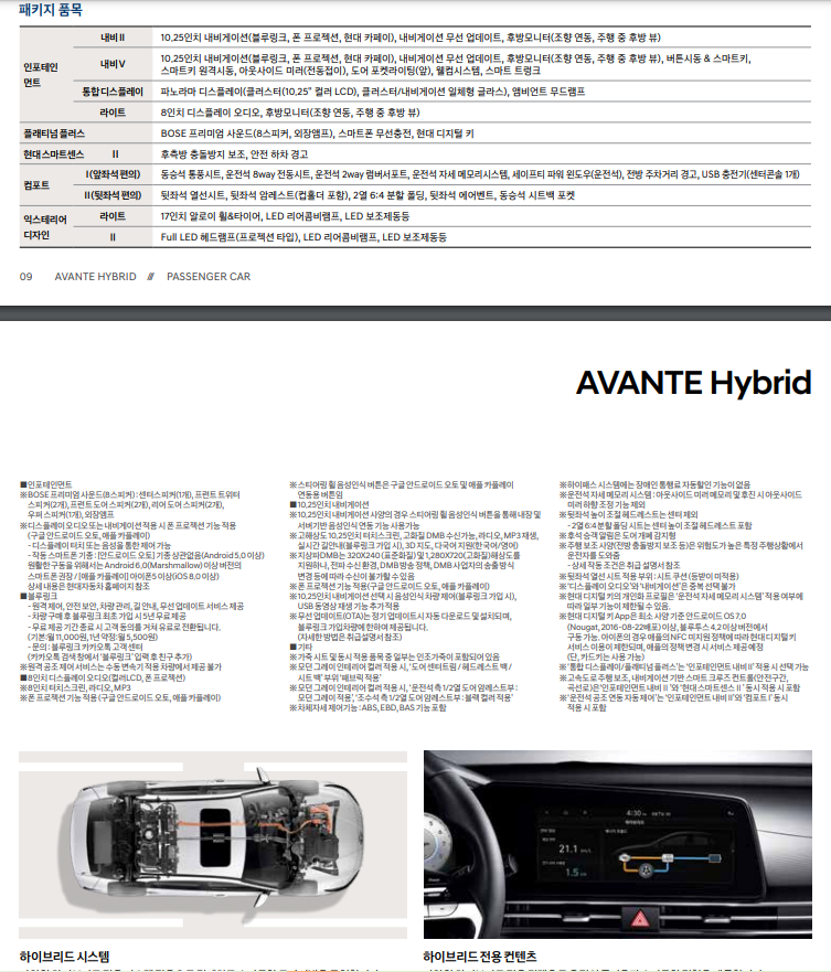 - 일반 오디오 시스템(6스피커, 라디오, MP3, 블루투스 핸즈프리)